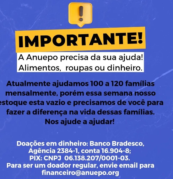 Anuepo, que auxilia mais de 100 famílias da região, precisa de sua ajuda