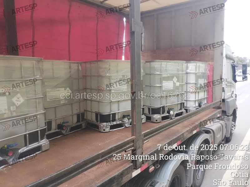 O caminhão que fechou, foi embora e o outro teve parte de sua carga de produto químico (Butilglicoll), espalhada na pista. Com a queda, o produto pegou fogo, cobrindo as três faixas da Raposo, mais a mureta de concreto que divide as pistas. Por sorte ninguém ficou ferido.