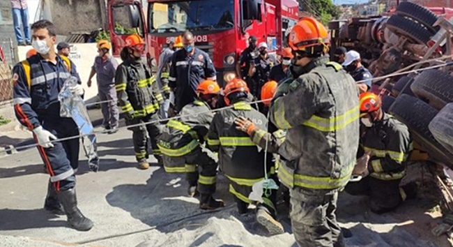 Equipes de socorro do Samu e Bombeiros foram acionadas por volta das 11h55 desta quarta-feira (19), para atender uma ocorrência de uma carreta carregada com areia que tombou em uma obra na Rua Pedro José de Oliveira, na altura do número 210, no Jardim da Rainha, região central de Itapevi.