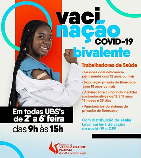 A vacina bivalente contra a covid-19 já está liberada em todas as UBS’s de Vargem Grande Paulista para: