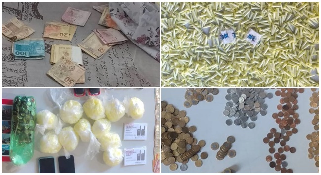 Diante da situação, os GCMs foram até a residência da mulher abordada para buscar a criança, e ao chegarem, avistaram várias porções de cocaína em cima de uma mesa. A criminosa confessou que era traficante e que armazenava drogas em sua casa. Ainda foram encontradas mais porções de drogas, dinheiro em notas e moedas, rádios comunicadores, baterias e outros objetos.