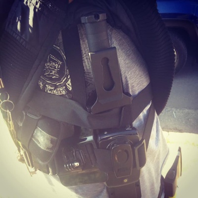 Então decidiram realizar a abordagem onde foi localizado em seu poder, uma faca e um machadinho que estavam em coldres presos a seu corpo (foto ao lado).