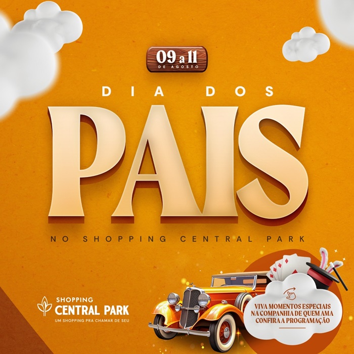 No sábado está prevista a “Caminhando com Papai”, ação inclusiva que começa às 10h. No domingo, às 16h, o Central Park recebe o mágico Ettore. Ele se apaixonou pela mágica aos 12 anos e, com um estilo próprio e divertido, conduz o show com muita interatividade, surpreendendo adultos e crianças com ilusões.