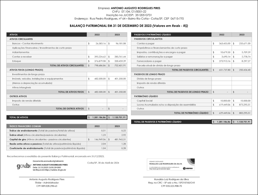 Edital – Balanço – Antônio Augusto Rodrigues Pires ME – 2023