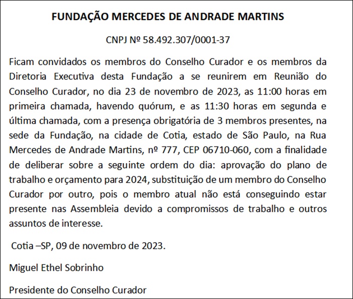 Convocação de Assembleia Geral Ordinária – Associação dos Proprietários Paysage Clair