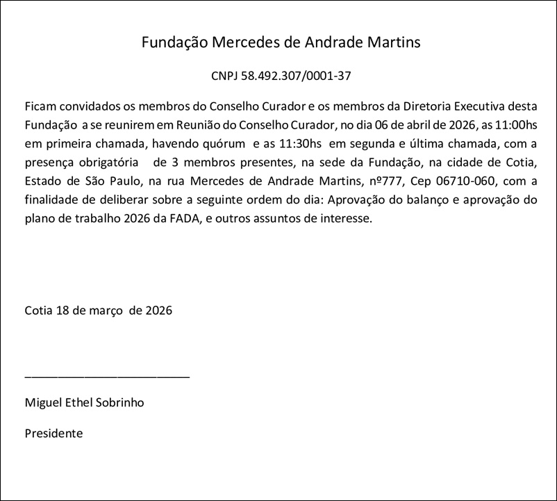 EDITAIS Edital – Reunião do Conselho Curador – Fundação Mercedes de Andrade Martins – Março 2026 20/03/202620/03/2026 Editor