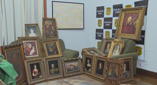 No local, foram encontrados 40 quadros, entre eles da família real brasileira, além de três telas, 17 castiçais, 20 imagens sacras feitas em cerâmica e cinco batinas.