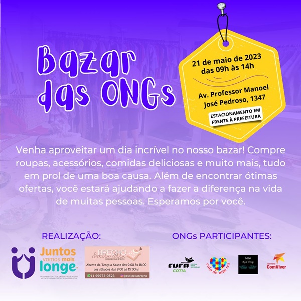 Em novo endereço, Bazar das ONG’S vai reunir roupas, acessórios, comida e muito mais em Cotia