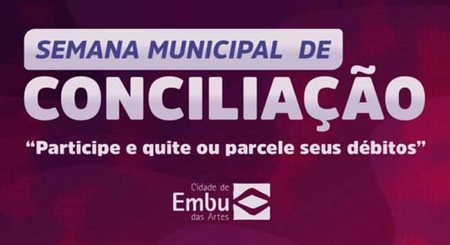 Para quem está em débito com a Prefeitura de Embu das Artes e já fez dois ou mais parcelamentos, essa é a chance de colocar suas contas em dia. De 11 a 22/03 acontece a Semana Municipal de Conciliação, o Concilia Embu, onde você pode quitar ou parcelar seus débitos com a Prefeitura.
