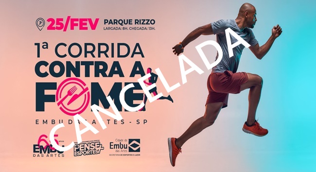 A Secretaria Municipal de Esportes e Lazer de Embu das Artes informou que a “Corrida contra a Fome” que ocorreria no domingo (25), no Parque Francisco Rizzo, foi cancelada por motivos de força maior.