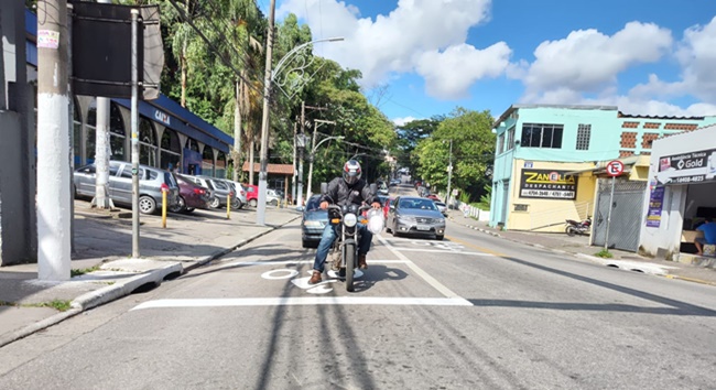 Embu das Artes cria área de espera para motos em cruzamento de vias
