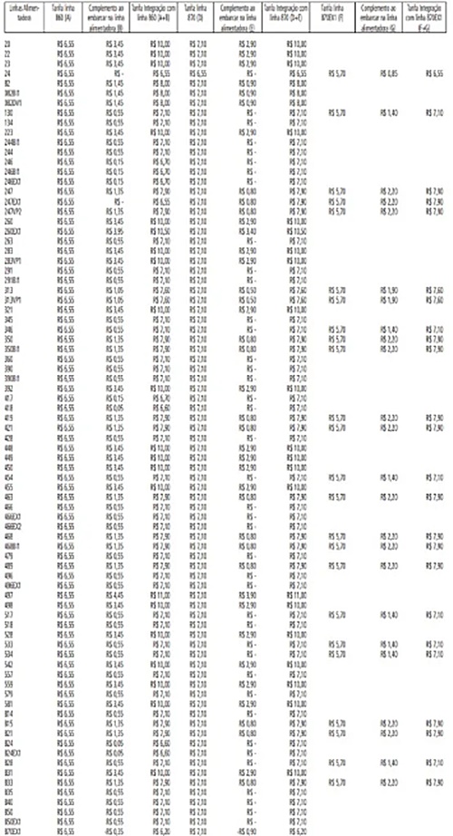 Por outro lado, as menores tarifas integradas serão as das linhas 024 e 247EX1 com os novos serviços, que sairão pelo valor de R$ 6,55. No total, serão mais de 80 linhas com integração tarifária com o sistema troncal em implantação em toda a Região Oeste.