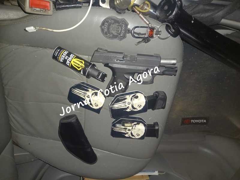 Segundo apurado pelo Jornal Cotia Agora, os agentes receberam denúncia sobre o acusado, que portava arma de fogo e identificava-se como Policial Civil, e conseguiram abordá-lo em frente a um restaurante onde ele fazia segurança, na Rodovia Bunjiro Nakao, no trecho pertencente a Cotia, portando uma pistola de calibre restrito (9mm) com dois carregadores municiados e registro de caçador (CAC).