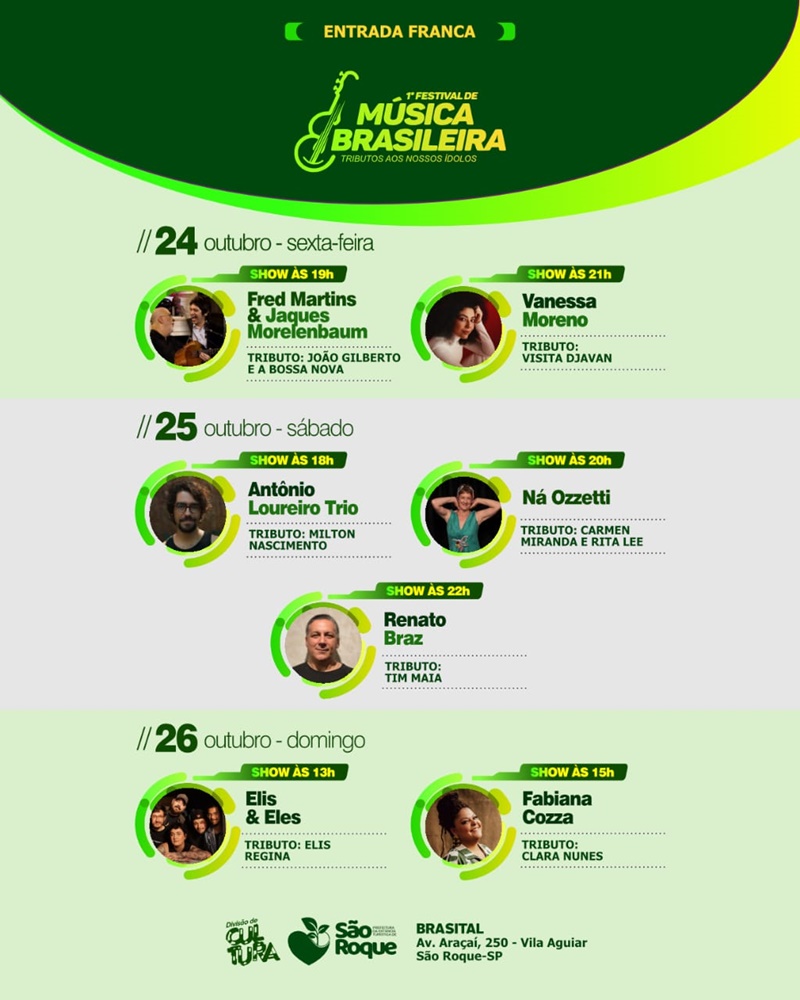 São Roque se prepara para receber um evento imperdível que promete celebrar a música popular. O 1º Festival de Música Brasileira – Tributos aos Nossos Ídolos acontece entre os dias 24 e 26 de outubro, na Brasital, com entrada e estacionamento gratuitos (vagas limitadas).