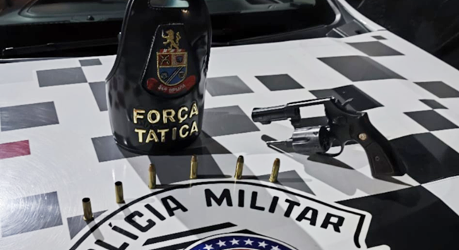 Na madrugada de domingo (30), a Força Tática do 36º Batalhão de Polícia Militar Metropolitano prendeu um homem por porte ilegal de arma e disparos em Embu das Artes.