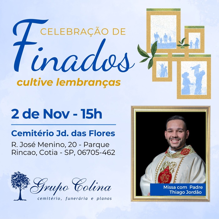 Convidamos você a se juntar a nós neste dia especial, onde celebraremos a vida e compartilharemos momentos de carinho e solidariedade. A missa campal no Cemitério Jardim das Flores é mais do que um evento religioso; é uma oportunidade de unir Cotia em um gesto de amor e apoio mútuo. Esperamos vê-los lá, em 2 de novembro, às 15h, no Cemitério Jardim das Flores de Cotia, que fica na Rua José Menino, 20 – Parque Rincão, Km 30 da Raposo Tavares.