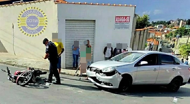 Na última quinta-feira (24), no Jardim Santana, um criminoso dirigia uma moto Honda CG vermelha sem placa e ao ver uma viatura da GCM de Cotia, tentou retornar para fugir, fez uma manobra brusca e bateu de frente com um carro que estava na via.