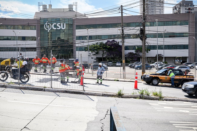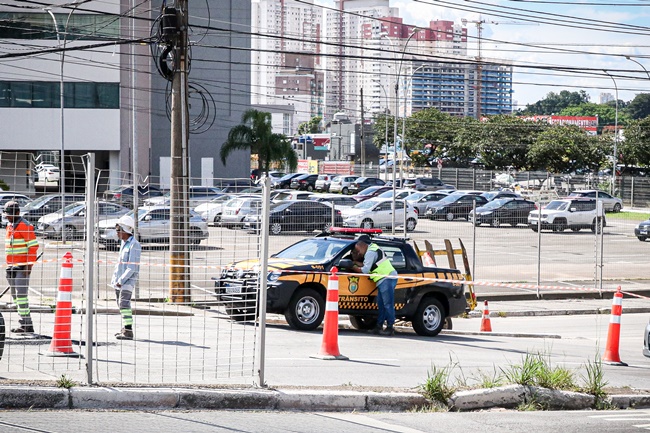 Uma manutenção no viaduto do Parque Shopping, em Barueri, gera trânsito intenso na faixa sentido Carapicuíba.