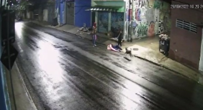Guardas civis foram acionados para um encontro de cadáver e, quando chegaram ao local, localizaram o corpo do homem. Um dos criminosos usa um pedaço de pau para agredir o morador de rua. Ele é espancado até ficar desacordado.