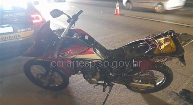 O motorista do veículo que bateu na moto fugiu e não há pistas ou identificação, segundo diz a Artesp – Agência Reguladora do Transporte em São Paulo.
