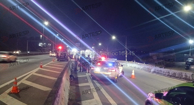 Um veículo que trafegava sentido São Paulo acabou atropelando o pedestre na pista expressa e com o impacto, ele foi arremessado para a faixa da marginal. Vale lembrar que naquele local há passarela e passagem em desnível.