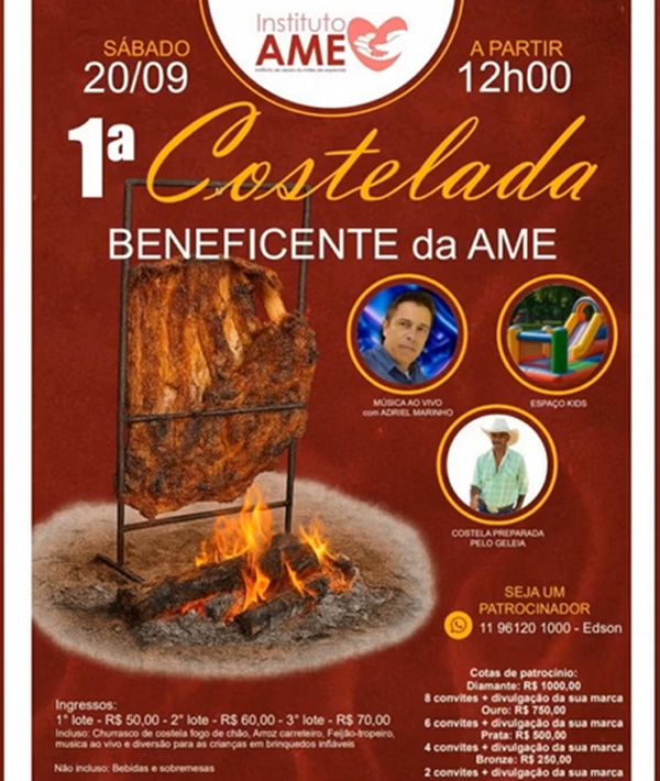 Neste sábado acontece a 1ª Costelada Beneficente do Instituto AME