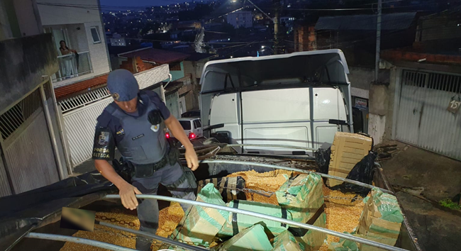 A equipe da Força Tática do 20º Batalhão de Polícia Militar apreendeu 756,2kg de maconha escondidos em meio a uma carga de milho, em Jandira. Três pessoas foram presas.