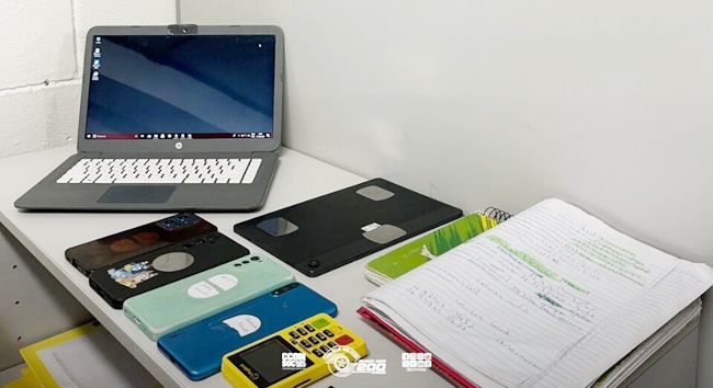 No interior do imóvel, também foi apreendido um caderno com anotações manuscritas detalhando golpes já aplicados, bem como informações de vítimas.
