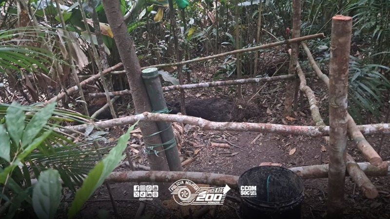 Durante patrulhamento conjunto com a equipe de vigilância do parque, os policiais localizaram um trepeiro com ceva ativa, utilizado para atrair catetos, pacas e queixadas. Diante dos rastros recentes, os agentes se posicionaram de forma camuflada na mata e aguardaram a chegada dos caçadores.