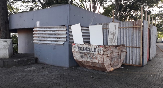 Os banheiros da Praça Joaquim Nunes, no Centro de Cotia, estão interditados para reforma. A Prefeitura anunciou que está reformando a instalação, que já recebeu tapumes.