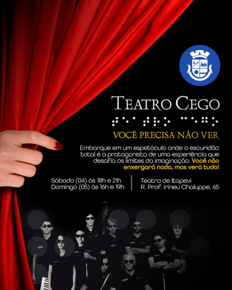 O Projeto Teatro Cego, em parceria com a Prefeitura de Itapevi, realiza no final de semana a peça teatral “Acorda, Amor!” – uma experiência imersiva no escuro, onde a plateia também integra o cenário, no Teatro Municipal (Rua Professor Irineu Chaluppe, 65, Centro).