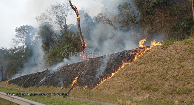 O domingo foi de trabalho para as equipes das concessionárias e Corpo de Bombeiros. No Rodoanel, no trecho do Km 34 em Embu das Artes as equipes tiveram que atuar três vezes, na madrugada e no período noturno. Foram vários focos desde sábado.