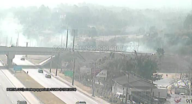 O tempo está seco, no final de semana fez muito calor, como no domingo, chegando aos 32°C na região de Cotia e com isso, várias queimadas foram registradas nas estradas próximas, como o Rodoanel, Castello Branco e Raposo Tavares.