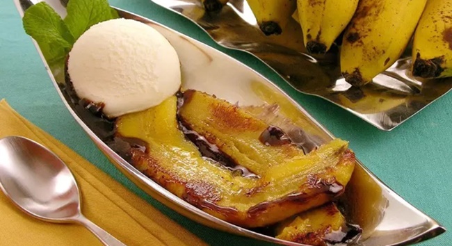 Flambe o conhaque e jogue na panela. Junte as bananas e cozinhe por 4 minutos.