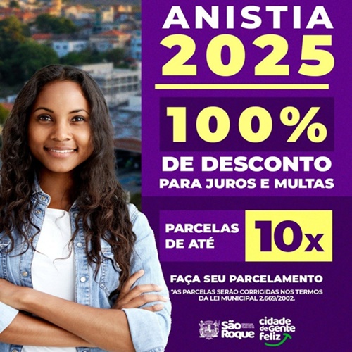 A Prefeitura de São Roque iniciou o período de anistia para débitos tributários e não tributários. A ação traz descontos de 100% nos juros e multas sobre débitos municipais vencidos até 31 de dezembro de 2024, medida que permite ao contribuinte com contas em atraso, como o IPTU e ISSQN, possa regularizar sua situação sem arcar com outras despesas adicionais.