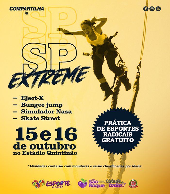 A adrenalina vai tomar conta do Estádio Quintinão com o SP EXTREME, iniciativa que levará mais de 10 atrações radicais e gratuitas para crianças e adultos nos dias 15 e 16 de outubro (sábado e domingo).