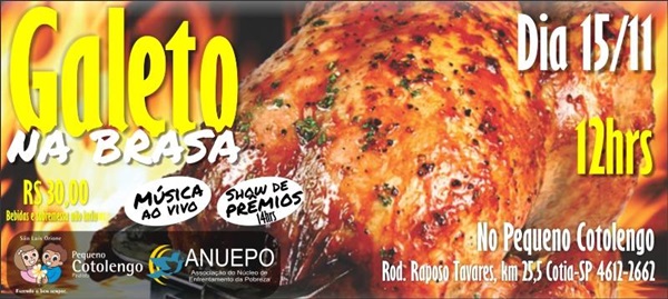 Ler maisO próximo domingo (15) será dia de galeto na brasa no Pequeno Cotolengo. A ação é beneficente em prol da