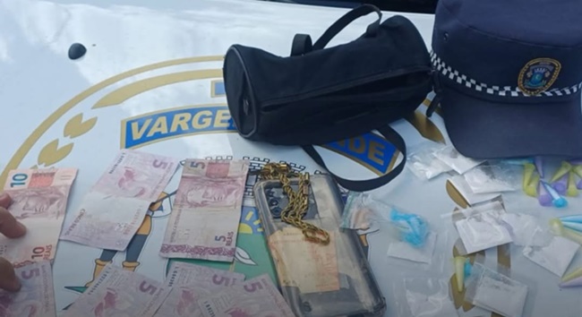 A atitude suspeita de um homem levou à abordagem e, após vistoria no local, foram localizadas diversas porções de entorpecentes e dinheiro em espécie.