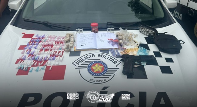 Durante a abordagem, foram encontrados com ele um simulacro de pistola, R$ 310 em dinheiro, 47 porções de crack, 28 porções de maconha, 13 comprimidos de ecstasy, 3 comprimidos de azulzinho, 4 frascos de lança-perfume, 140 pinos de cocaína e uma bolsa com anotações relacionadas ao tráfico.