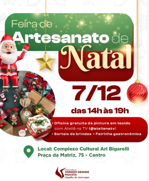 A Prefeitura de Vargem Grande Paulista promove neste sábado a Feira de Artesanato de Natal.